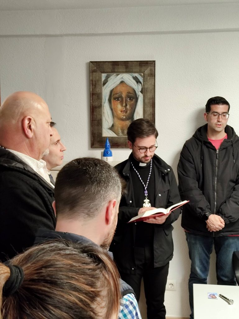 En la tarde del lunes, 2 de marzo, antes de comenzar el reparto de túnicas para nuestra procesión penitencial del Domingo de Ramos de 2026, tuvo lugar la bendición del nuevo local de la Hermandad. Nuestro capellán, D. Francisco Javier Cova Martínez, fue el encargado de bendecir estas dependencias ubicadas en la calle Senda de los huertos, número 6, bajo, donde la Hermandad Piedad y Estrella pretende instalar la secretaría para la atención presencial a los hermanos.