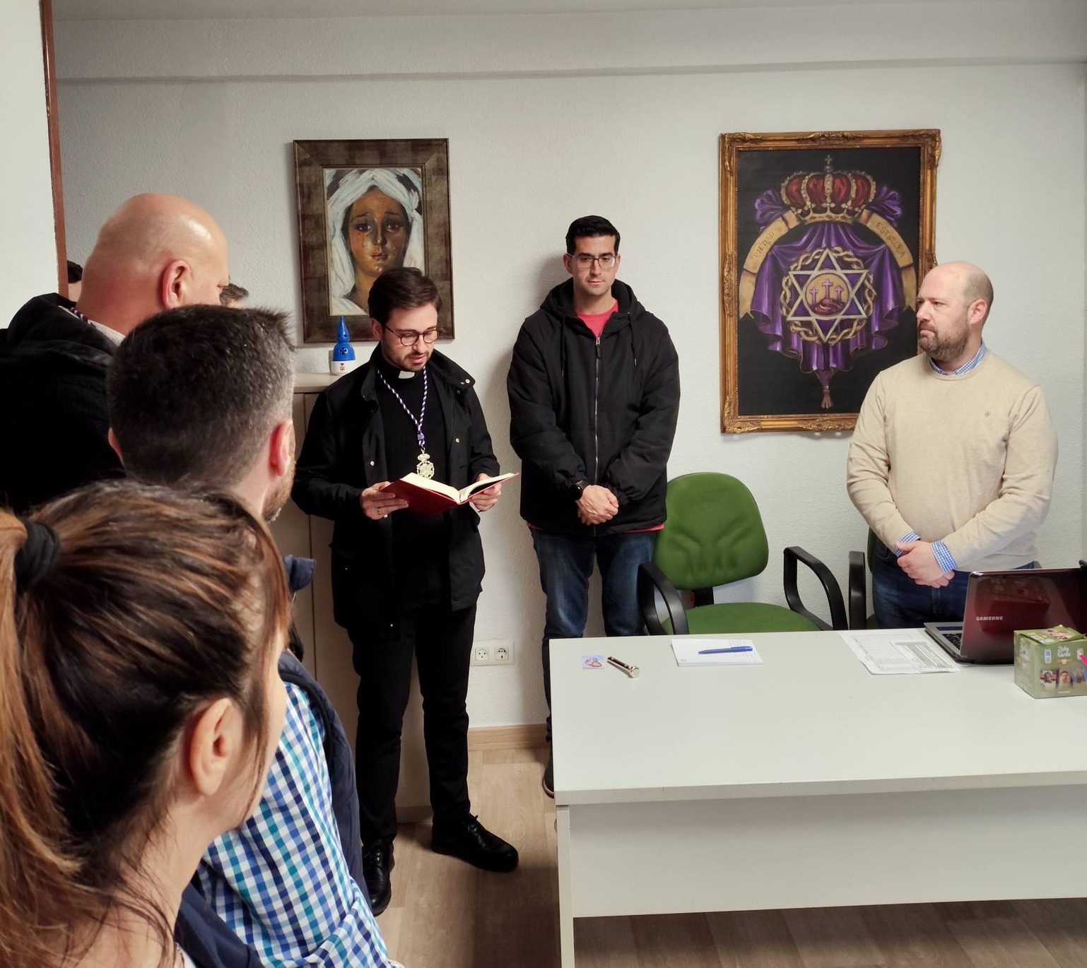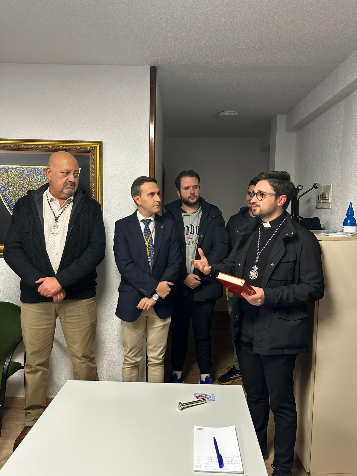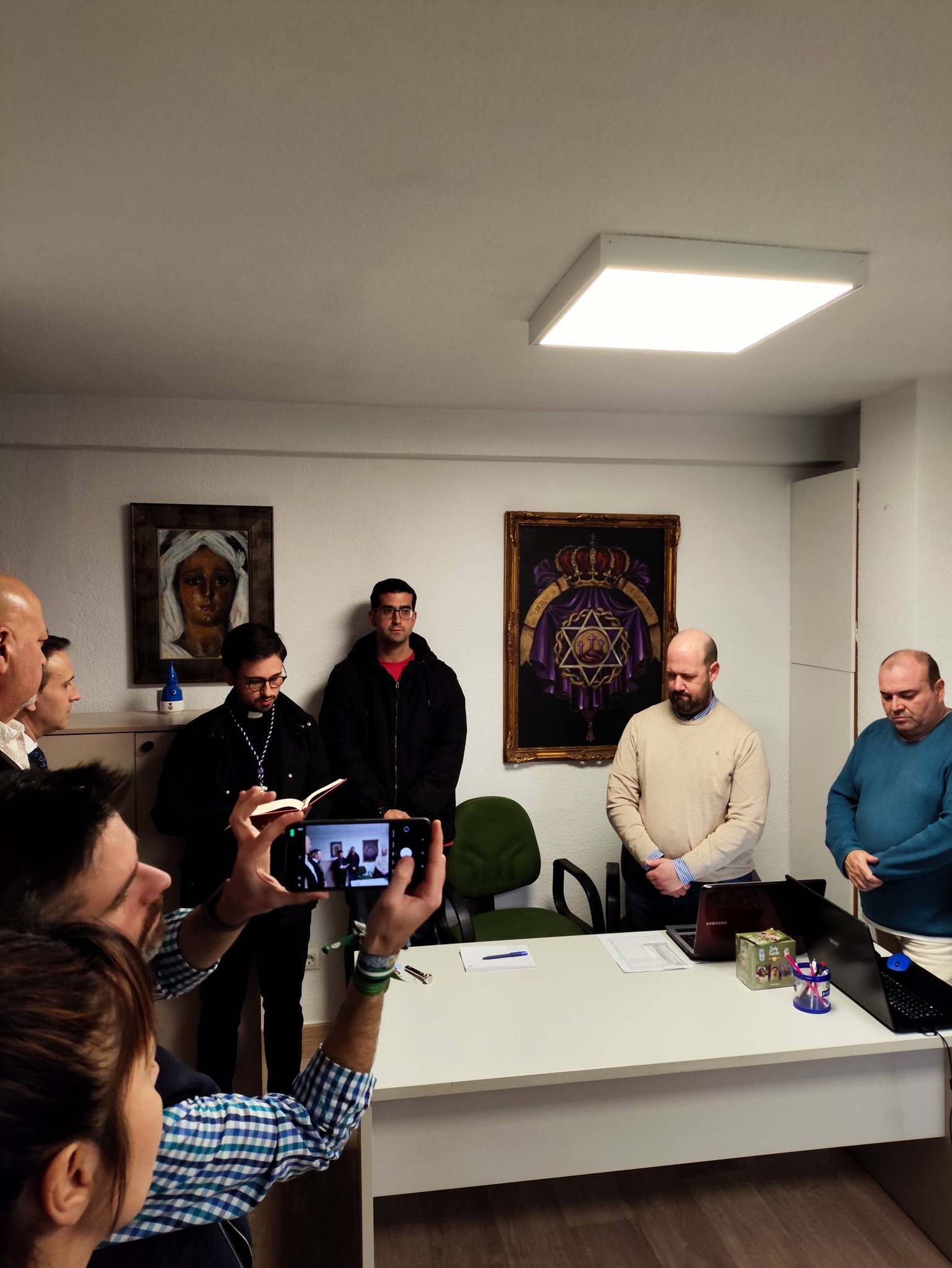 En la tarde del lunes, 2 de marzo, antes de comenzar el reparto de túnicas para nuestra procesión penitencial del Domingo de Ramos de 2026, tuvo lugar la bendición del nuevo local de la Hermandad. Nuestro capellán, D. Francisco Javier Cova Martínez, fue el encargado de bendecir estas dependencias ubicadas en la calle Senda de los huertos, número 6, bajo, donde la Hermandad Piedad y Estrella pretende instalar la secretaría para la atención presencial a los hermanos.