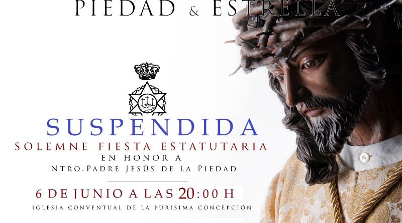 - De igual modo, comunicamos la suspensión de la Fiesta Estatutaria en honor a Ntro. Padre Jesús de la Piedad, que tendría lugar el próximo 6 de Junio en la Iglesía Conventual de la Purísima Concepción, teniendo en cuenta las reducidas dimensiones de ésta, que pone en riesgo a la Comunidad de Madres Dominicas.
