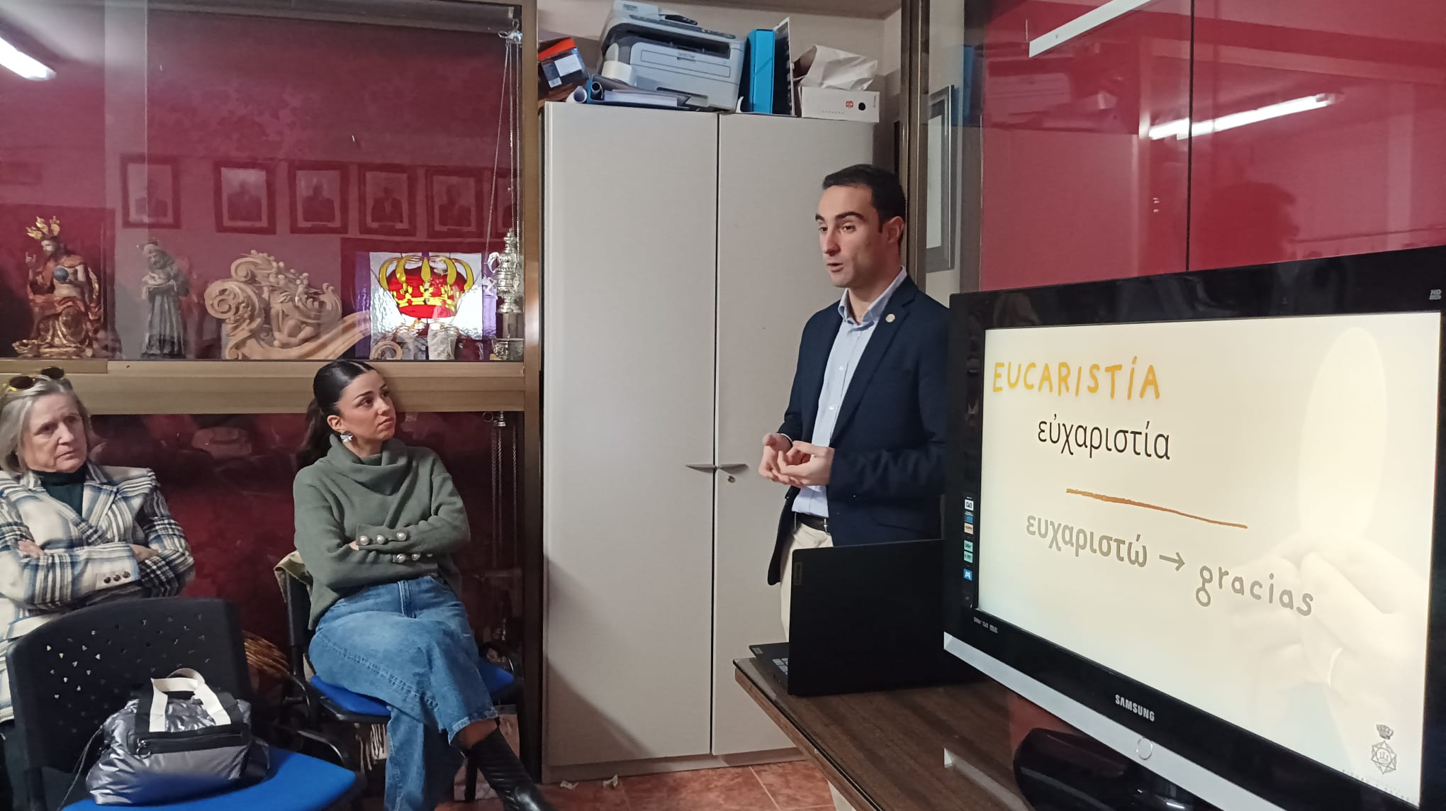 El seminarista Salvador Ruiz ha ofrecido una interesante charla de formación en nuestra Casa de Hermandad titulada “Comprender y vivir la Eucaristía”, con la que hemos aprendido el porqué de la liturgia de la Santa Misa. A través de su explicación, los asistentes hemos profundizado en el sentido y vivencia de la Eucaristía como sacramento central de nuestra fe y como sustento para nuestra vida cristiana.
