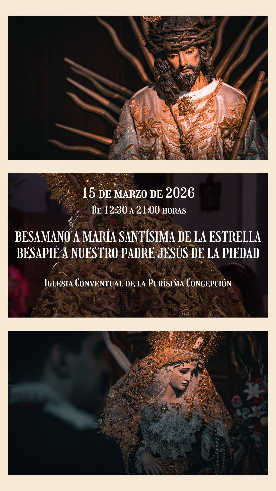 Iglesia de la Purísima Concepción Plaza de la Purísima Concepción, junto a la Calle Pilar de la Imprenta, Jaén, Jaén, EspañaSolemne Besapié a Nuestro Padre Jesús de la Piedad y Besamano a María Santísima de la Estrella.