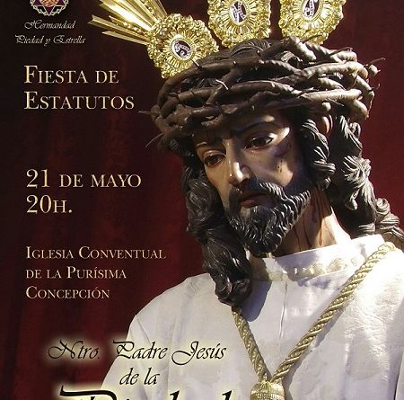 El sábado, 21 de mayo, a partir de las 20,00 horas en la Iglesia Conventual de la Purísima Concepción los cofrades, vecinos y devotos estamos invitados a la Fiesta de Estatutos en Honor a Nuestro Padre Jesús de la Piedad.