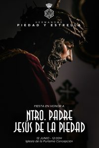 La Hermandad Piedad y Estrella celebra este próximo domingo la Fiesta de Estatutos en Honor a Nuestro Padre Jesús de la Piedad y Función Principal de Instituto. El culto dará comienzo a las 12 horas en la Iglesia Conventual de la Purísima Concepción con el rezo del Santo Rosario y la posterior Eucaristía presidida por nuestro capellán D. Blas Pegalajar González.