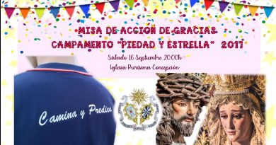 El próximo día 22 de septiembre, sábado a las 20 h. tendremos la misa de acción de gracias en nuestra Capilla Conventual de la Purísima Concepción por este campamento y en nuestra Casa de Hermandad una fiesta donde cenaremos en familia