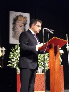 El Teatro Darymelia acogió un año más el Pregón de Exaltación a María Stma. de la Estrella, en esta ocasión en su trigésimo cuarta edición, pronunciado por Manuel Castellano Hernández. Un pregón cargado de historia en el cual el pregonero desgranó el renacer de la Hermandad y cómo Cristo y María han sido sus guías en el desarrollo de su vida profesional y personal. Bellas palabras nacidas del corazón de un cofrade entregado a la Madre de Dios que ensalzaron el amor entre la Madre y sus hijos.