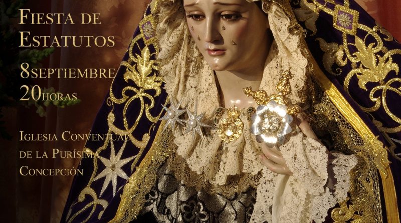 El próximo 8 de septiembre, Festividad de la Natividad de la Santísima Virgen, se celebrará la Solemne Fiesta de Estatutos en Honor a María Stma. de la Estrella en la Iglesia Coventual de la Purísima Concepción. Comenzará a las 20:00 horas con el Rezo del Santo Rosario y a continuación la Eucaristía oficiada por nuestro Capellán, el Rvdo. Sr. D. Blas Pegalajar, con la participación del Coro de la Hermandad.