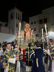 Ya en una Iglesia de la Merced repleta de fieles y cofrades, nuestro capellán D. Blas Pegalajar ofició la Misa junto al párroco de Santa Isabel y costalero de María Santísima de la Estrella, D. Francisco Carrasco. Al finalizar, dio comienzo el Solemne Traslado de María Santísima de la Estrella hasta la Casa de Hermandad, en el que estuvo acompañada por la Agrupación Musical Nuestro Padre Jesús de la Piedad en su Presentación al Pueblo, quienes ofrecieron sus marchas en forma de oración musical.