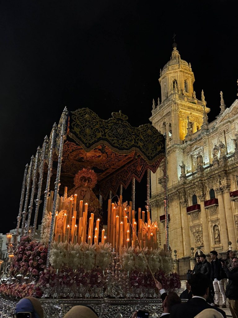 Me quedo con la oración, compostura y saber estar de los hermanos nazarenos y mantillas, con el esfuerzo de los costaleros, con la maestría de los capataces, con el rigor de los acólitos, con el celo de fiscales y alcaldes para el cumplimiento de horarios o la casi imposible misión del encendido de los cirios, o con la perfecta interpretación de cada marcha por parte de nuestra Agrupación Musical “La Estrella” y la Banda Pedro Morales de Lopera.