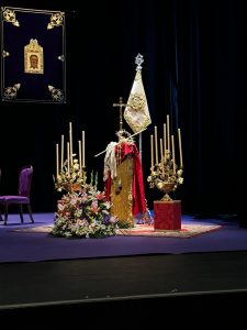 Siempre junto a Él, siempre de morado y blanco, tuve que verme frente a Ella, también en un teatro, para entender que fue su Luz la que me llevó a descubrir al Señor. Una Estrella bajó del cielo para quedarse en Jaén, permanecer oculta en el silencio de la clausura y brillar de manera especial una noche al año. La misma luz de la mañana que despertaba la ilusión de los más pequeños se cobija ahora bajo palio para ser destello y señal de unos nazarenos que siguen su trazo por calles de nobles casonas y recuerdos hortelanos. Hasta la Luna se asoma celosa tras una de las torres de la Catedral para observar la belleza de María cuando por Julio Ángel, otra de esas cuestas que sobresaltan el corazón, se desliza acariciando balcones y desemboca así en su barrio donde lo efímero se hace eterno.