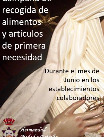 Un año más, la Vocalía de Caridad de nuestra Hermandad organiza, durante todo el mes de junio, una Campaña de recogida de alimentos y de artículos de primera necesidad (alimentos no perecederos, artículos de higiene personal, alimentos infantiles, etc…)