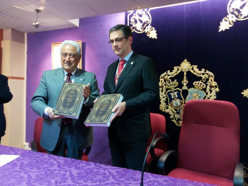 Su autor, D. José Galián Armenteros, que fue presentado por el Vocal de Formación de la Hermandad D. Ramón Calderón, desgranó los distintos hitos que la Hermandad ha ido viviendo a lo largo de su historia, siempre acompañados por la Comunidad Dominica a la que tantos y tan fuertes lazos nos unen, e hizo entrega de los dos tomos de los que se compone la obra al Hermano Mayor D. José Antonio Carmona.