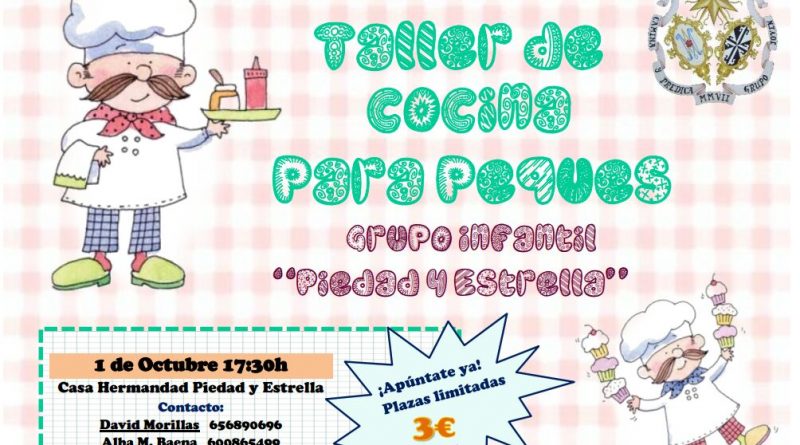 El taller será llevado a cabo el sábado, 1 de octubre, en la Casa de Hermandad a las 17:30 horas. El precio por niño es de 3€ y éste puede ir acompañado por un adulto. El rango de edades establecido es de 3 a 13 años y está abierto a toda persona interesada, cofrade o no.