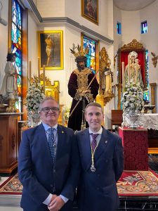En el marco de la Fiesta se llevó a cabo el traspaso de poderes por parte del anterior hermano mayor, Bartolomé Castro Duro, a quien la Hermandad hizo entrega de un regalo en agradecimiento por su dedicación y compromiso durante los seis años en los que ha estado al frente de nuestra cofradía. Antes, el nuevo hermano mayor agradeció el apoyo recibido en las pasadas elecciones y destacó el crecimiento que ha experimentado la Hermandad gracias al incansable trabajo de las distintas juntas de gobierno que han puesto lo mejor de cada uno de sus miembros en estos más de 40 años. Para este mandato 2025-2028, Juan Luis Plaza prometió ilusión y esfuerzo para mantener la tendencia de una cofradía aún joven pero ya arraigada en nuestra ciudad.