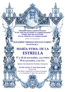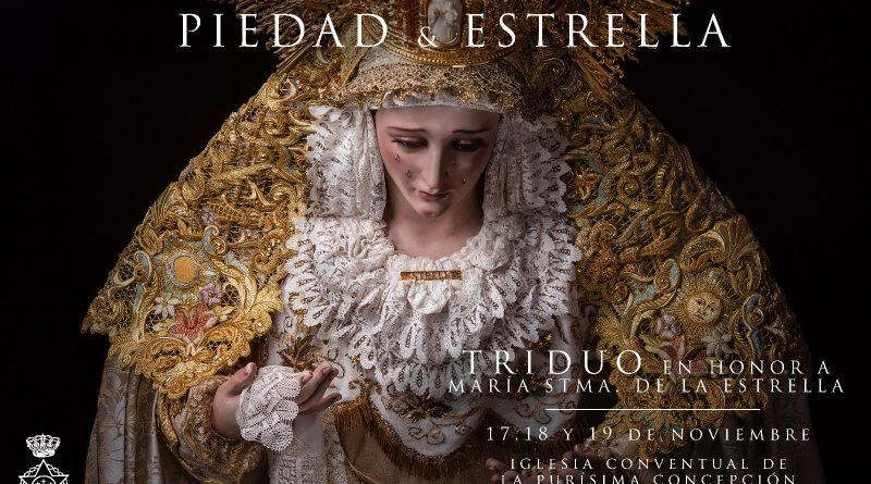 Se celebra así el Solemne Triduo Estatutario en Honor a María Stma. de la Estrella los próximos 17, 18 y 19 de noviembre en la Iglesia Conventual de la Purísima Concepción, comenzando el 17 y el 18 a las 19:30 horas y el tercer y último día, el 19, a las 12:00 horas.