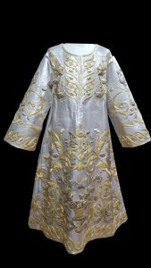 Para la confección de la túnica, la Hermandad ha adquirido unos bordados del siglo XVIII en buen estado de conservación, que junto a otros nuevos que completan el diseño, componen una túnica bordada en oro sobre tisú de plata del XIX de primerísima calidad traído de telares franceses.
