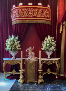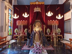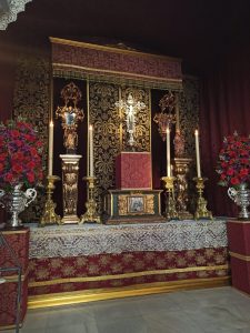 Como viene siendo habitual, el equipo de fabricanía y mayordomía demostró su saber hacer y levantó sendos altares con gran belleza y elegancia, resaltando la realeza del Rey de Reyes y de la Reina de la Alcantarilla, e invitando a la oración.
