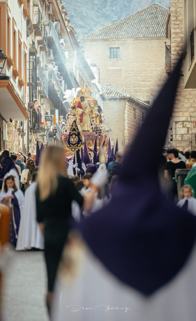 Nazarenos y mantillas, costaleros y acólitos, mostraron ese compromiso profundo con la Hermandad, con una participación ejemplar que engrandeció el Domingo de Ramos jiennense. Cada paso, cada mirada, cada gesto hablaba de una fe viva, de una devoción sincera.