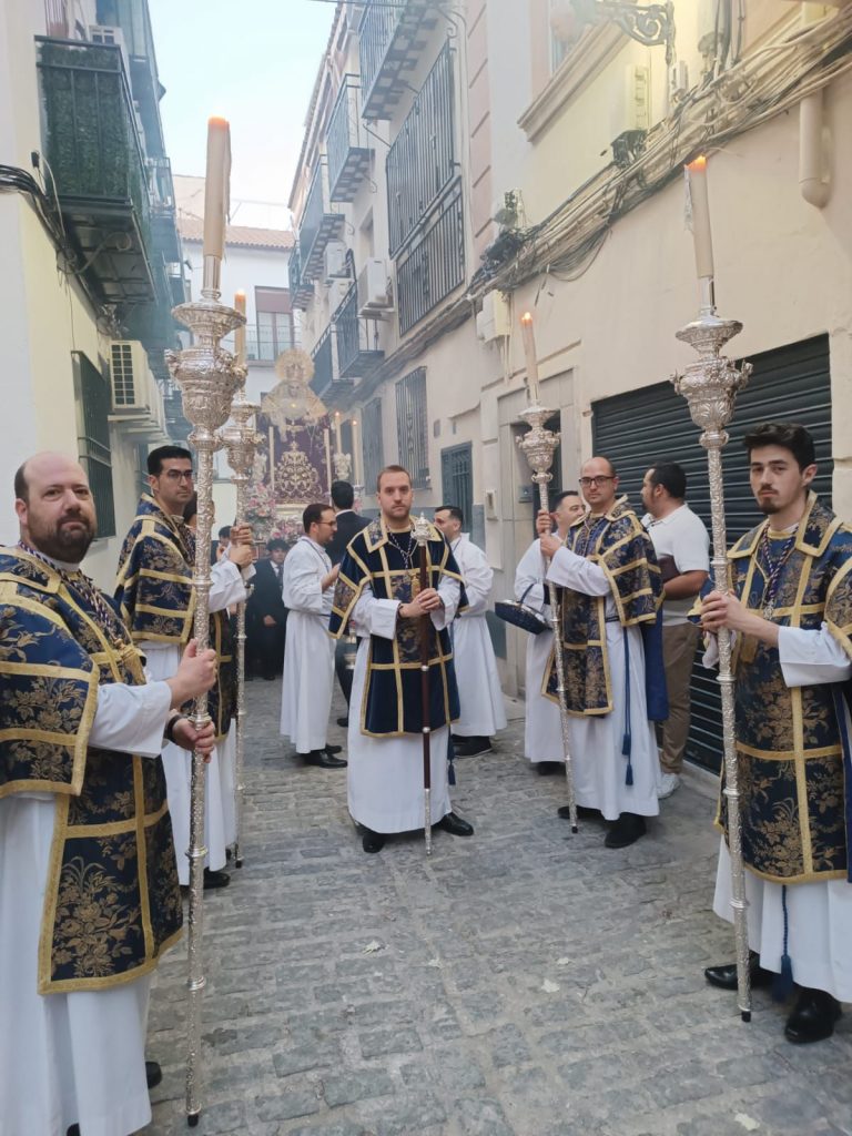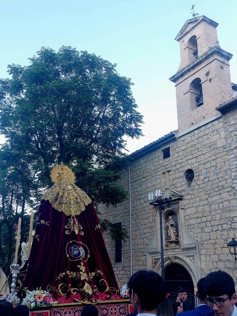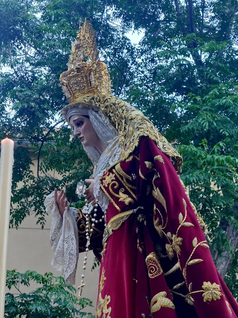 Tal y como establecen nuestros Estatutos, María Santísima de la Estrella volvió a salir a las calles del barrio de la Alcantarilla para que sus cofrades y devotos rezaran junto a Ella el Santo Rosario. Tras la celebración de la Eucaristía presidida por nuestro capellán, D. Blas Pegalajar, se abrieron las puertas de la Iglesia Conventual de la Purísima Concepción para iniciar un peregrinar de oración por las callejuelas del entorno del convento dominico. Después de rezar cada uno de los misterios, la Agrupación Musical Juvenil María Santísima de la Estrella acompañó con su oración musical el caminar ligero del cortejo que ascendió hasta la Carrera de Jesús para regresar por el mismo camino que se ilumina con su Luz en la noche del Domingo de Ramos.