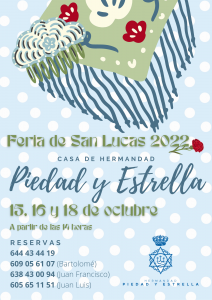 Esta Feria de San Lucas 2022 te invitamos a vivirla en nuestra Casa de Hermandad. La progresiva profesionalización de la feria y el incremento de los costes en la instalación de la caseta en el Recinto Ferial de La Vestida, la Hermandad Piedad y Estrella ha decidido convertir nuestra casa de hermandad en ese espacio de convivencia entre nuestros cofrades que tradionalmente pasaban por la feria.
